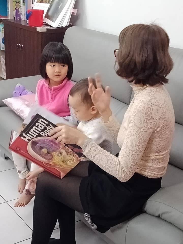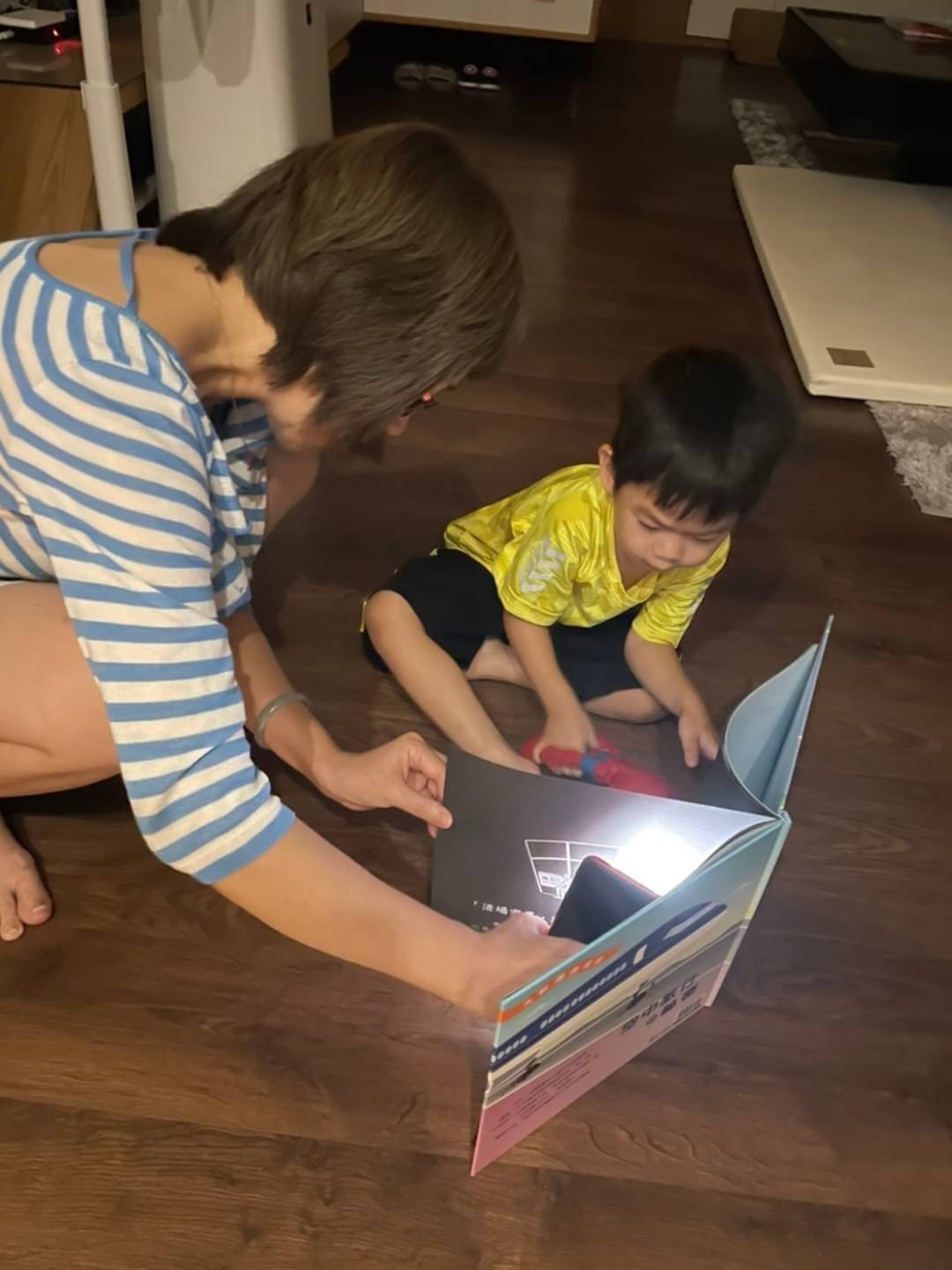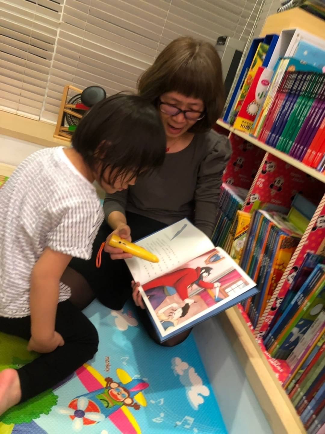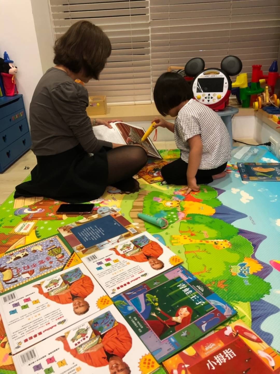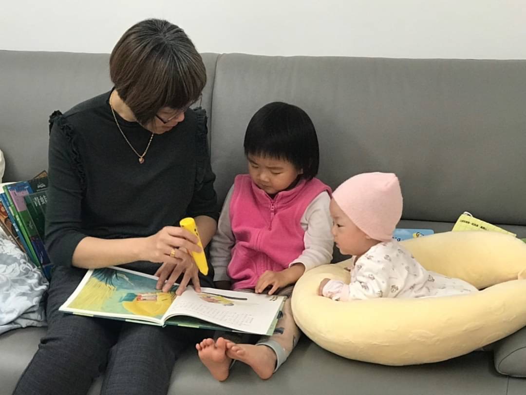 剛開始不知如何陪讀的我,因為燕倫姐的二句話感動到,燕倫姐總是說:「不用擔心,不好講的故事讓我來幫你講給孩子聽」、「一天只要陪讀1本書,一年小孩就能吸收365本書」,因此在燕倫姐的指導下,從那刻起我 開始養成每日睡前陪讀的習慣,並也鼓勵爸爸要加入陪讀行列,漸漸地讓孩子們養成了睡前聽故事的好習慣,這樣的習慣讓我慢慢得看到孩子開始會自己翻書、開始會自己唸故事書,並具有自學能力,這正是我所期待的。